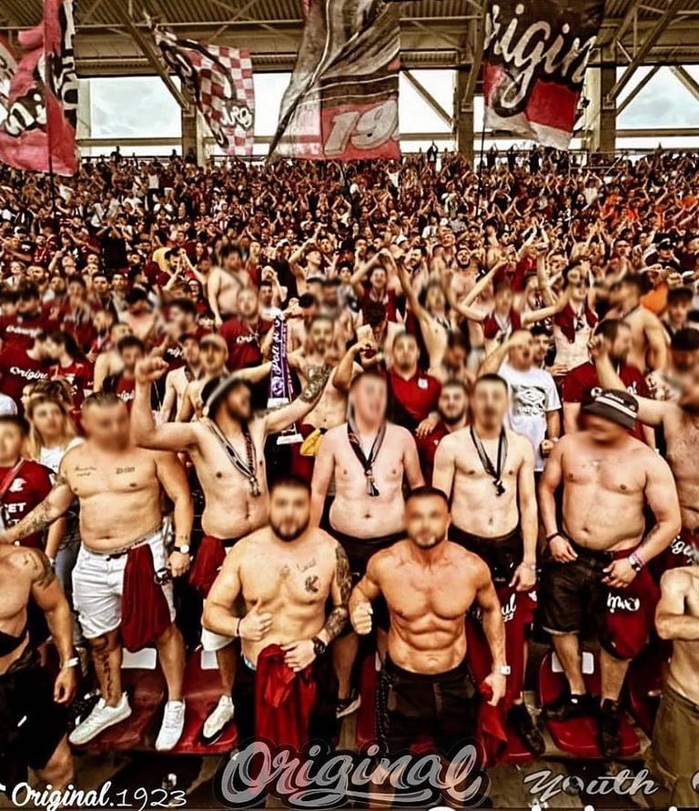 The unbreakable spirit of our original 1923 Rapid Bucharest fans lives on — loyal, loud, and proud through every victory and storm. A brotherhood born on the rails, carried by passion, and never broken.